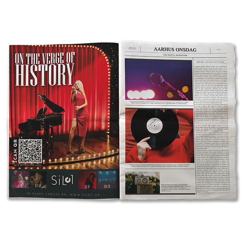 - En annonce til en avis, med specifikke krav til størrelse og opløsning.